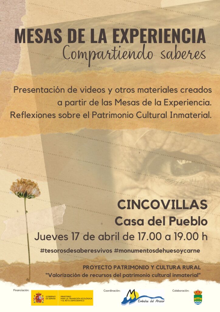 Desde Redes de Educación, Patrimonio y Cultura, a través de la Mancomunidad Embalse del Atazar, nos ofrecen esta maravillosa actividad para mostrarnos todo lo que han recopilado durante las Mesas de Experiencia, unos encuentros semanales en los que han ido recogiendo los saberes y las memoria de esos tesoros de hueso y carne que son las personas más mayores de nuestros pueblos.