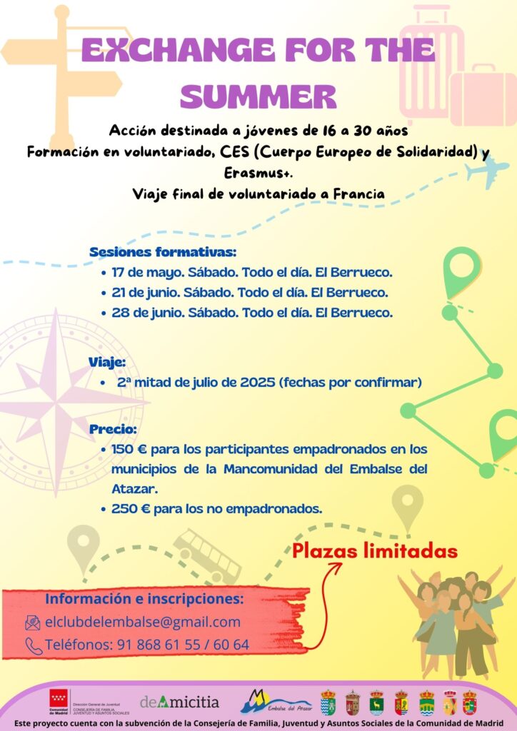 La Mancomunidad del Embalse del Atazar te invita a participar en un emocionante programa de intercambio juvenil centrado en el Cuerpo Europeo de Solidaridad (CES) y Erasmus+. Prepárate para vivir una experiencia enriquecedora que comenzará con una completa formación en voluntariado, brindándote las herramientas y conocimientos necesarios para marcar la diferencia.