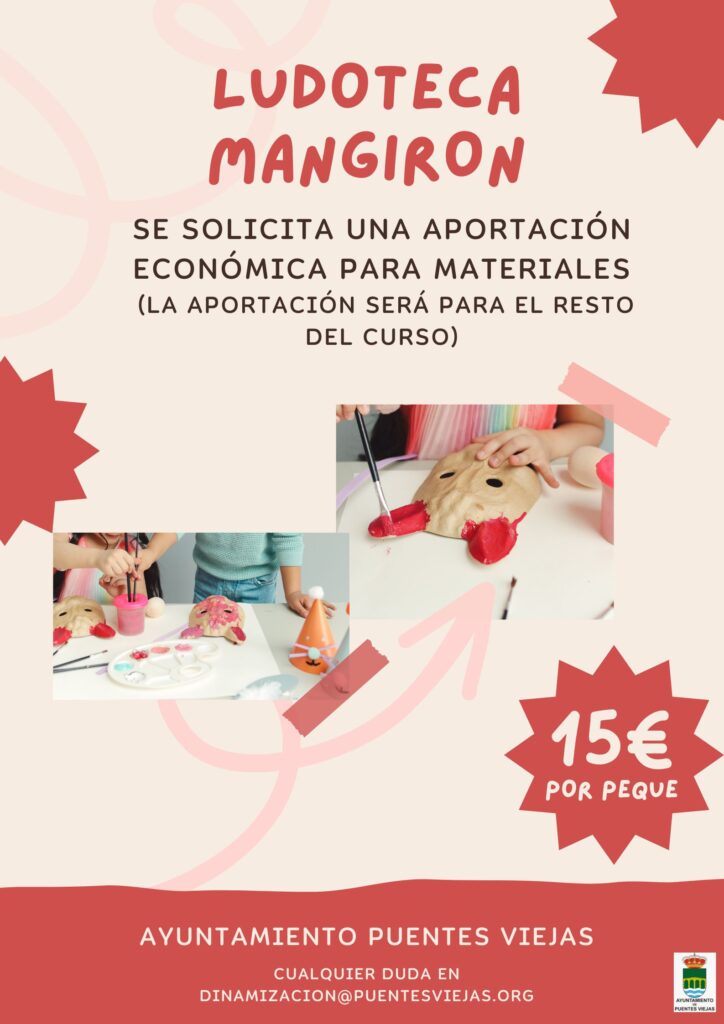 Aviso para las familias que llevan a sus peques a Ludoteca. Pueden entregar la aportación a María o en el ayuntamiento
