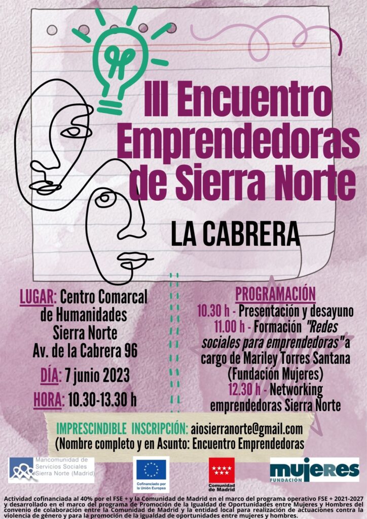 El próximo 7 de junio va a tener lugar en La Cabrera el III Encuentro de Emprendedoras de Sierra Norte. 09/05/2023Navegación entre publicacionesAnteriorPublicación anterior:Homenaje artístico a la mujer en Puentes ViejasSiguientePublicación siguiente:Centro Comarcal de Humanidades Sierra NorteNoticias relacionadasAviso de interrupción de suministro eléctrico11/12/2025Actividades Navidad Puentes Viejas10/12/2025Campamento urbano de invierno 202509/12/2025Saborea la Navidad de la Sierra Norte05/12/2025Modificación de los horarios de la línea 196 (Madrid – La Acebeda)04/12/2025Puentes Viejas Cardioprotegida03/12/2025