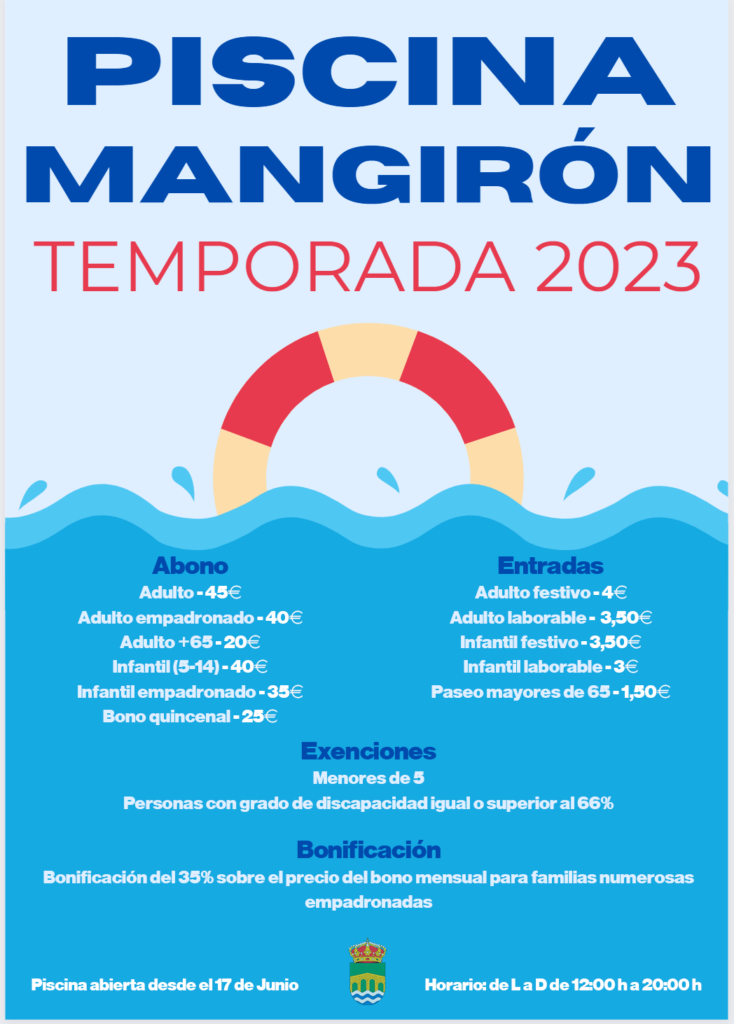 Os recordamos que la temporada de piscina 2023 ha sido inaugurada este fin de semana. 19/06/2023Navegación entre publicacionesAnteriorPublicación anterior:Plan de actuaciones preventivas de los efectos del exceso de temperaturas sobre la saludSiguientePublicación siguiente:Ofibús de Caixabank Julio 2023Noticias relacionadasAviso de interrupción de suministro eléctrico11/12/2025Actividades Navidad Puentes Viejas10/12/2025Campamento urbano de invierno 202509/12/2025Saborea la Navidad de la Sierra Norte05/12/2025Modificación de los horarios de la línea 196 (Madrid – La Acebeda)04/12/2025Puentes Viejas Cardioprotegida03/12/2025