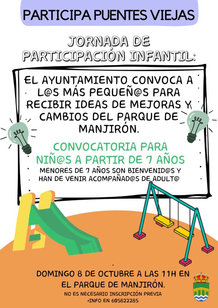 Domingo 8 de Octubre a las 11h en el parque de Manjirón. 26/09/2023Navegación entre publicacionesAnteriorPublicación anterior:Proyecto Entrelobas ganador de los premios de Agricultura Ecológica de la Unión Europea 2023SiguientePublicación siguiente:Retomamos la montañaNoticias relacionadasAviso de interrupción de suministro eléctrico11/12/2025Actividades Navidad Puentes Viejas10/12/2025Campamento urbano de invierno 202509/12/2025Saborea la Navidad de la Sierra Norte05/12/2025Modificación de los horarios de la línea 196 (Madrid – La Acebeda)04/12/2025Puentes Viejas Cardioprotegida03/12/2025