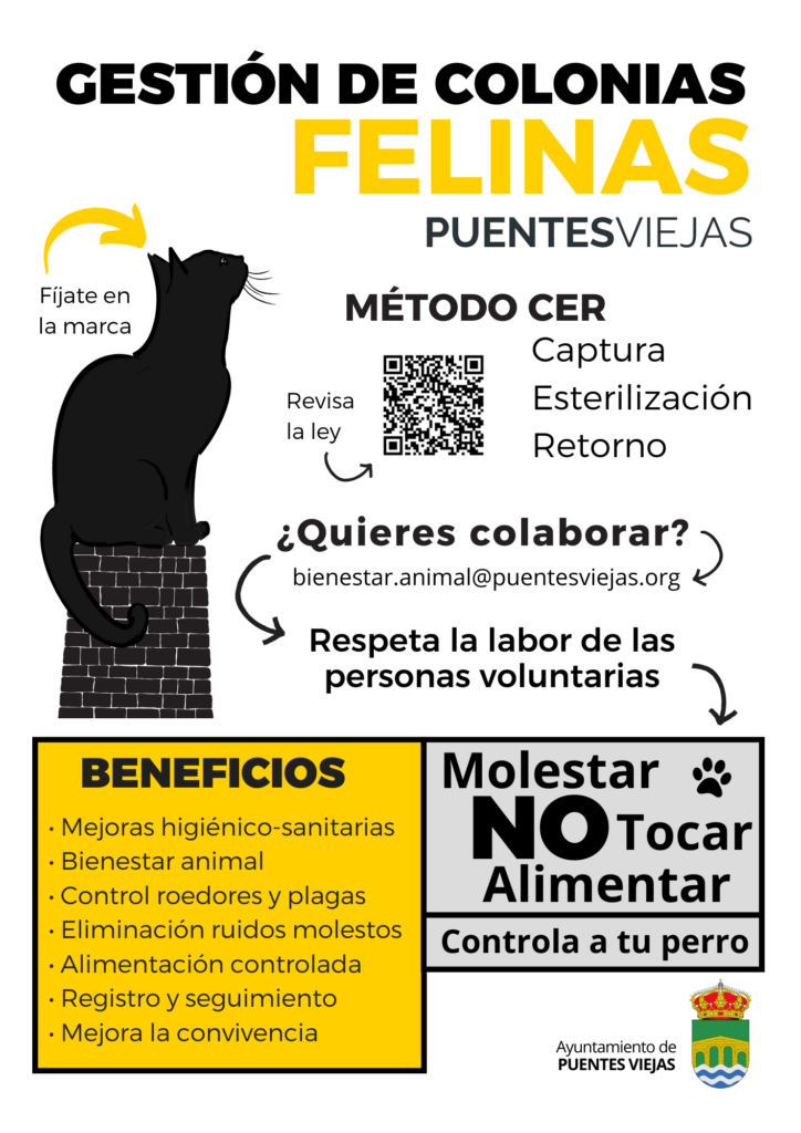 Información sobre la gestión de colonias felinas y posibilidad de colaboración. 21/03/2024Navegación entre publicacionesAnteriorPublicación anterior:Ofertas para el aprovechamiento de pastos durante el año 2024 de la finca municipal “PRADO DE LA MORA”SiguientePublicación siguiente:Nuevo servicio de Atención al ConsumidorNoticias relacionadasAviso de interrupción de suministro eléctrico11/12/2025Actividades Navidad Puentes Viejas10/12/2025Campamento urbano de invierno 202509/12/2025Saborea la Navidad de la Sierra Norte05/12/2025Modificación de los horarios de la línea 196 (Madrid – La Acebeda)04/12/2025Puentes Viejas Cardioprotegida03/12/2025