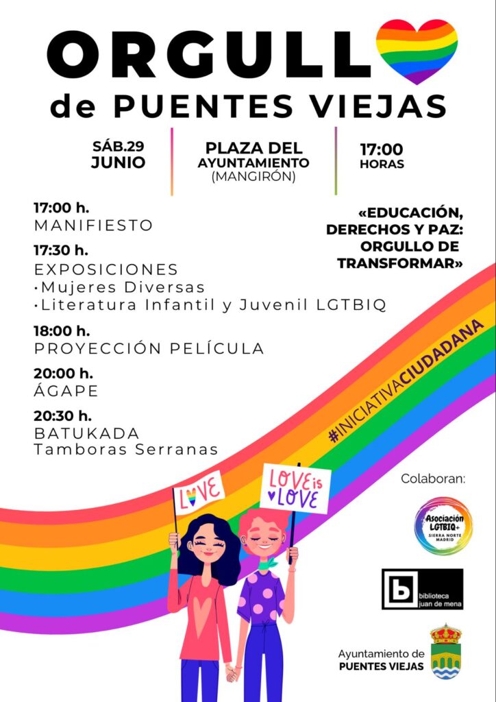 Este fin de semana el ayuntamiento de Puentes Viejas celebra el orgullo con diferentes propuestas y actividades. 28/06/2024Navegación entre publicacionesAnteriorPublicación anterior:Bando evento deportivo ciclistaSiguientePublicación siguiente:Fiestas de Paredes de Buitrago 2024Noticias relacionadasModificación de los horarios de la línea 196 (Madrid – La Acebeda)04/12/2025Puentes Viejas Cardioprotegida03/12/2025Actividad Láser-City03/12/2025Estudio sobre el impacto de la soledad no deseada en la Sierra Norte02/12/2025Actividad de Multiaventura en Snozone – Xanadú02/12/2025Curso gratuito: Gestión de la PRL en pymes y micropymes01/12/2025
