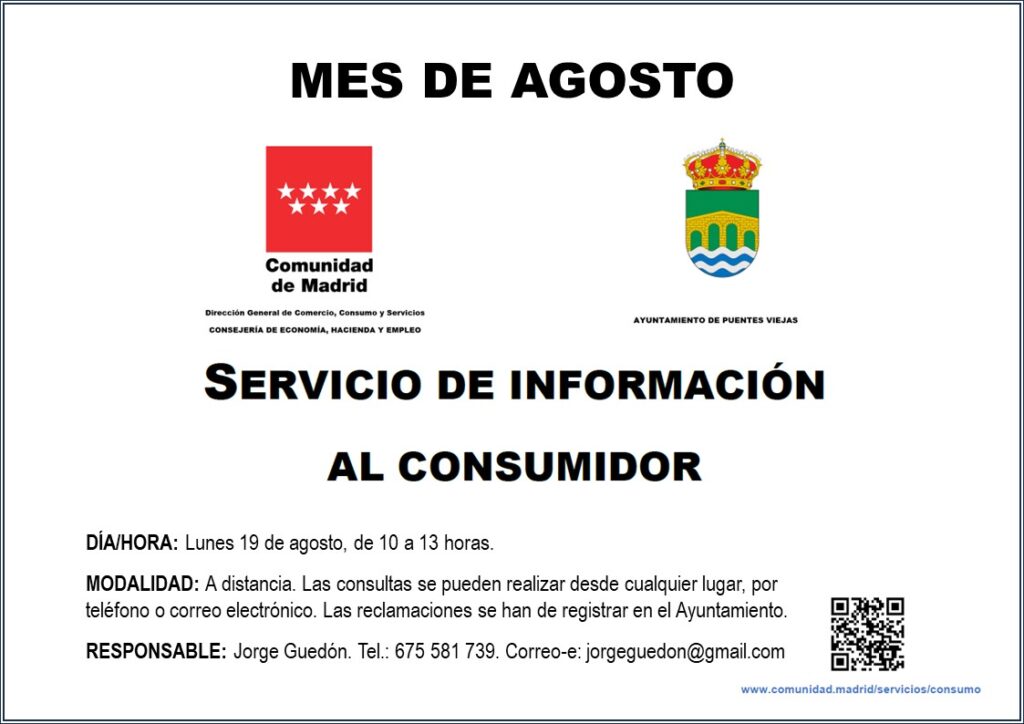 10/07/2024Navegación entre publicacionesAnteriorPublicación anterior:¿TE GUSTARÍA EXPLORAR EL BERRUECO DESDE LA MIRADA DE LA DIVERSIDAD? ¡INSCRÍBETE!SiguientePublicación siguiente:Programa de asistencia material básica de la comunidad de MadridNoticias relacionadasAviso de interrupción de suministro eléctrico11/12/2025Actividades Navidad Puentes Viejas10/12/2025Campamento urbano de invierno 202509/12/2025Saborea la Navidad de la Sierra Norte05/12/2025Modificación de los horarios de la línea 196 (Madrid – La Acebeda)04/12/2025Puentes Viejas Cardioprotegida03/12/2025