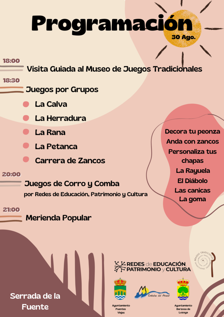 Ya tenemos la programación para la Jornada de Juegos Tradicionales de los días 30 y 31 de agosto, en Serrada de la Fuente y en Berzosa del Lozoya, respectivamente.