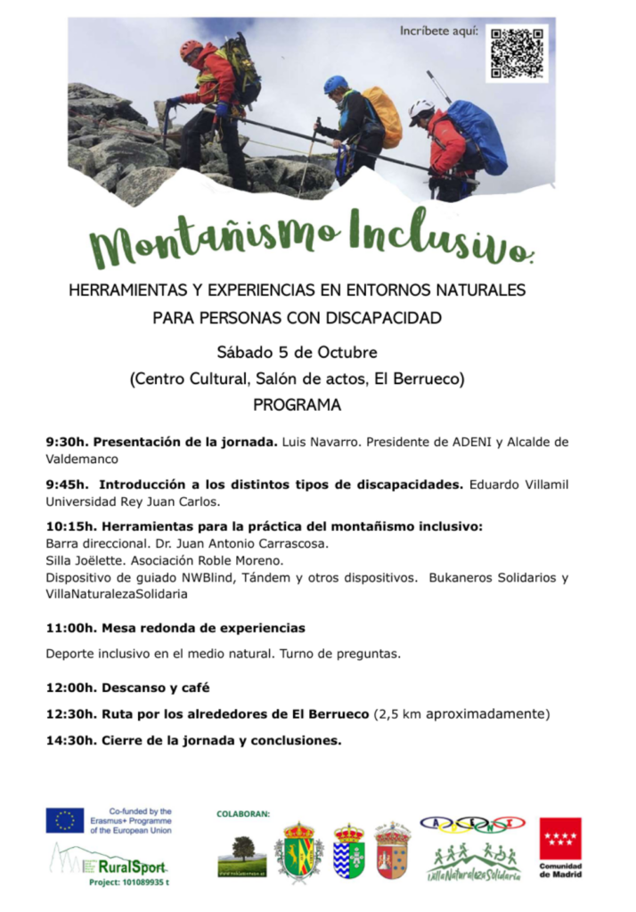 El sábado 5 de octubre tendrá lugar esta Jornada sobre Montañismo Inclusivo en la localidad de El Berrueco. Una actividad del Proyecto Rural Sport gestionado por Adeni. Más información e inscripciones en este enlace. 01/10/2024Navegación entre publicacionesAnteriorPublicación anterior:CAMINAR LA MEMORIA en SerradaSiguientePublicación siguiente:Atención al consumidorNoticias relacionadasAviso de interrupción de suministro eléctrico11/12/2025Actividades Navidad Puentes Viejas10/12/2025Campamento urbano de invierno 202509/12/2025Saborea la Navidad de la Sierra Norte05/12/2025Modificación de los horarios de la línea 196 (Madrid – La Acebeda)04/12/2025Puentes Viejas Cardioprotegida03/12/2025