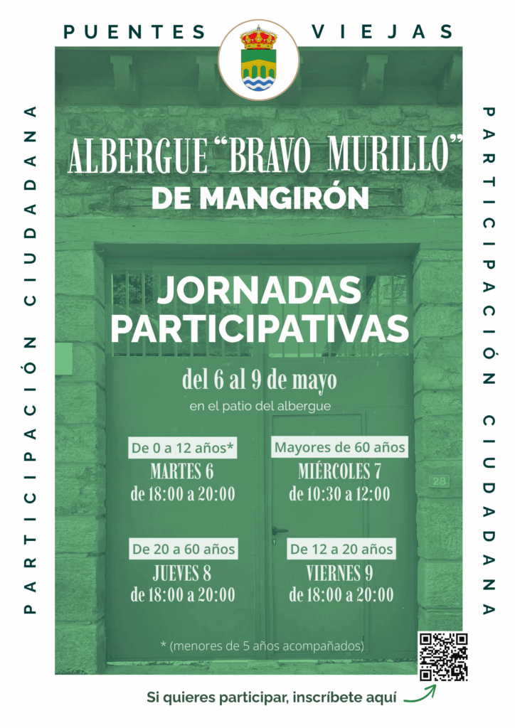 Desde el Ayuntamiento de Puentes Viejas continuamos impulsando la participación ciudadana y queremos convocaros a las Jornadas Participativas relativas al futuro del Albergue «Bravo Murillo», tal como se anunció en la reciente Jornada de Puertas Abiertas.