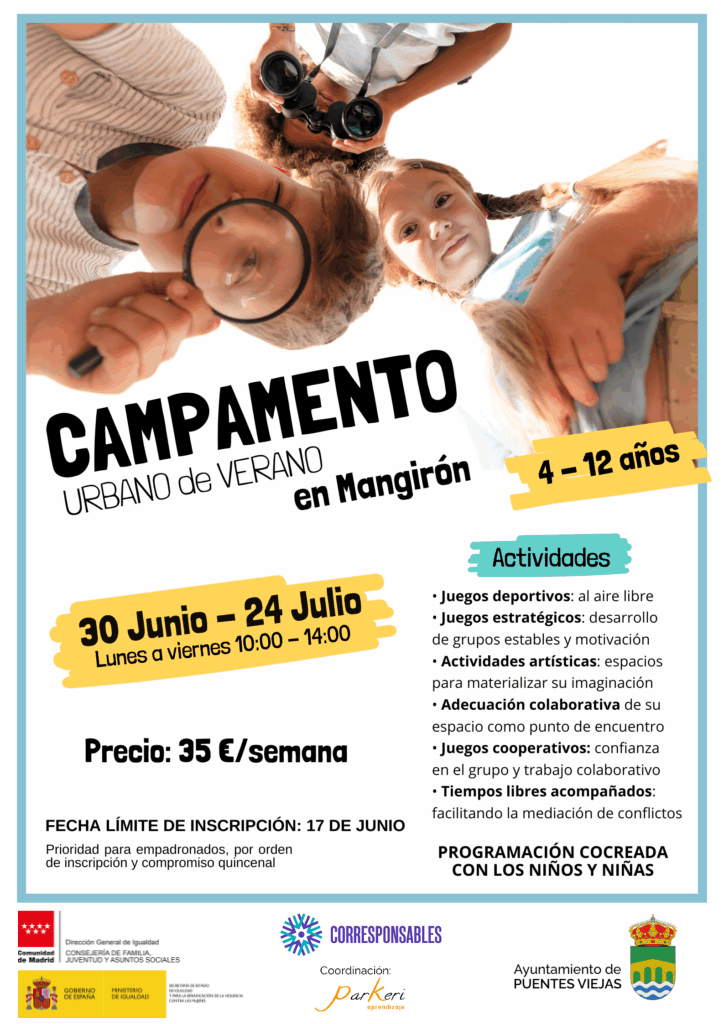 Abiertas las inscripciones para el Campamento Urbano de Verano en Mangirón, dirigido a niños y niñas de 4 a 12 años y organizado dentro del marco del Programa Corresponsables.