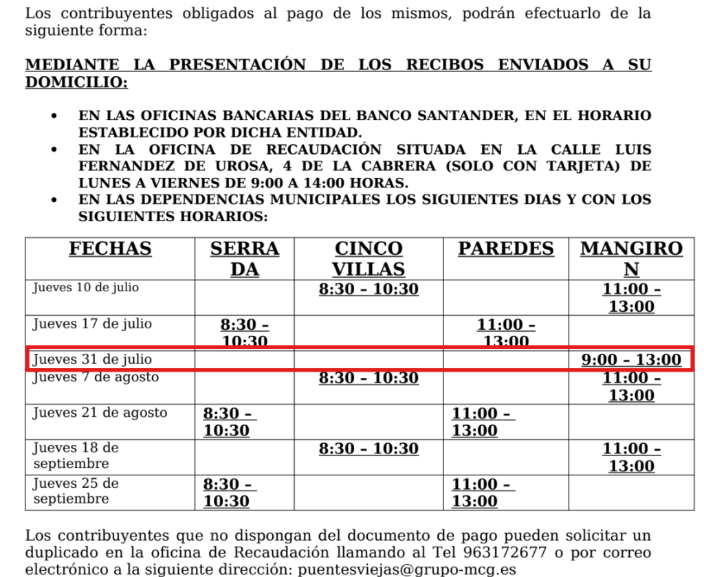 Mañana, jueves 31 de julio, la oficina de recaudación visita nuestras instalaciones para facilitar a los contribuyentes su obligación de pago de impuestos.