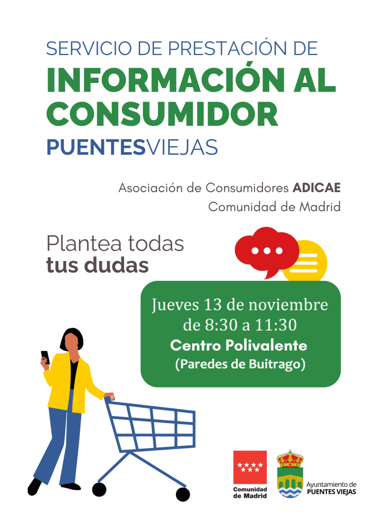 Este jueves, 13 de noviembre, vuelve el Servicio de Atención al Consumidor a Paredes de Buitrago. Estará en el Centro Polivalente, de 8:30 a 11:30.