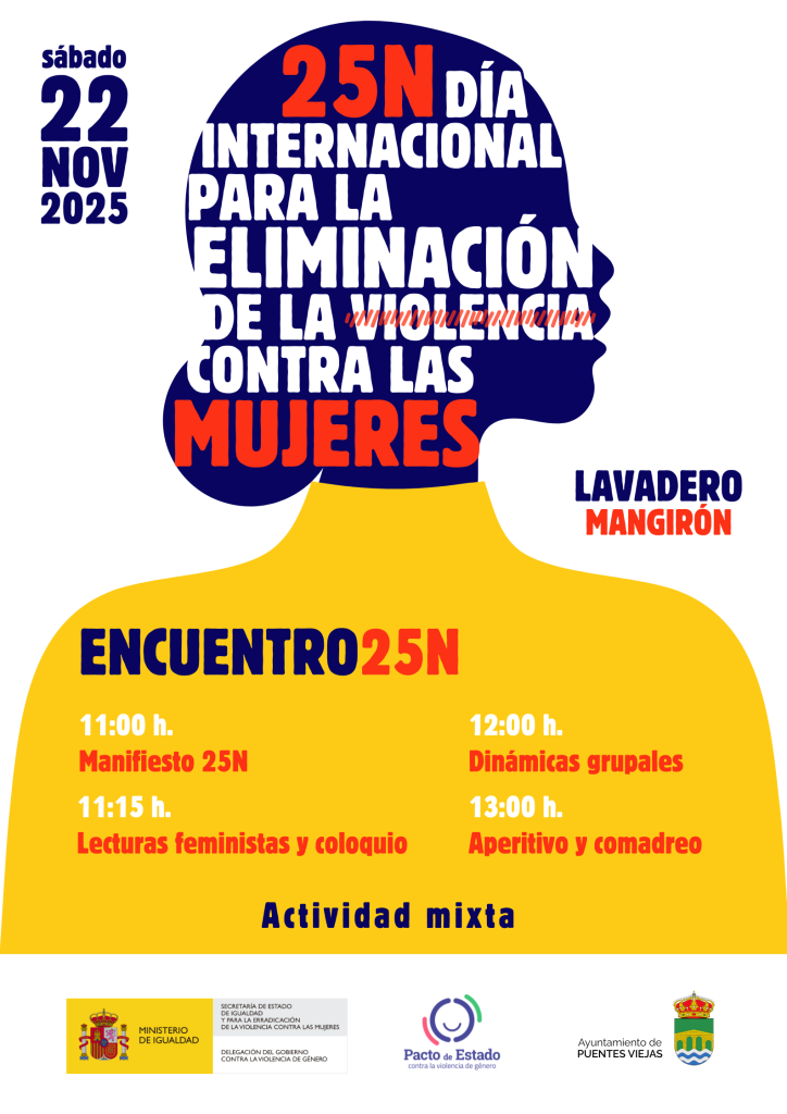 El próximo 22 de noviembre, Puentes Viejas acoge un encuentro con motivo del 25N, Día Internacional para la Eliminación de la Violencia contra las Mujeres. Una jornada de reflexión, participación y conciencia colectiva para seguir avanzando en la defensa de los derechos de las mujeres y en la construcción de entornos seguros y libres de violencias.