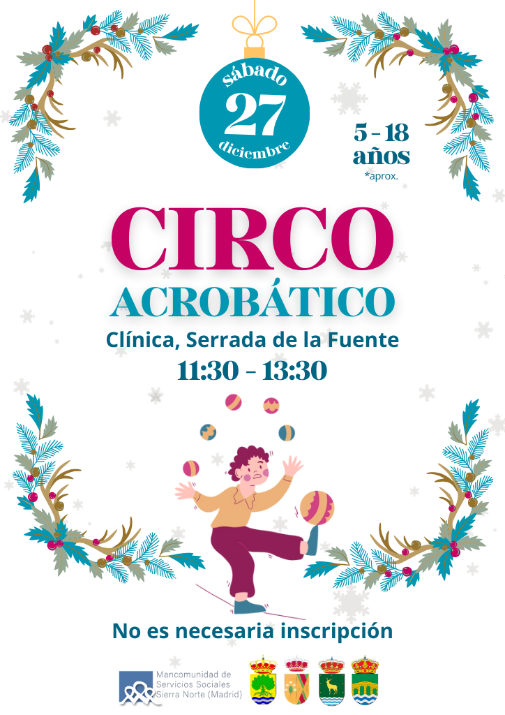 El sábado 27 de diciembre, de 11:30 a 13:30 horas, la Clínica de Serrada de la Fuente se llenará de risas, equilibrios y acrobacias con este espectáculo circense. La actividad es de acceso libre y no requiere inscripción previa.