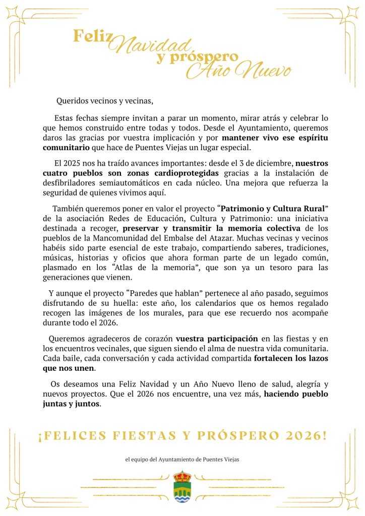 A continuación, os compartimos la carta que hemos enviado a vuestros domicilios junto con el Calendario 2026. Este calendario es fruto de la creatividad y del trabajo conjunto de las personas que participaron en el proyecto “Paredes que hablan”.
