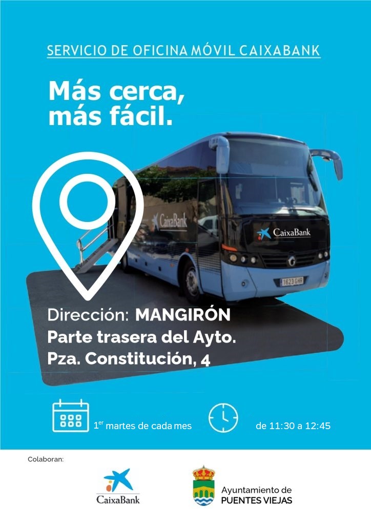 El próximo martes 3 de febrero, de 11:30 a 12:45, visitará nuestro municipio la oficina móvil de CaixaBank.