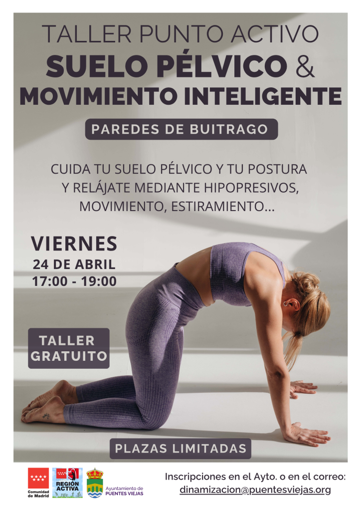 Dentro del programa Madrid Región Activa de la Comunidad de Madrid —una iniciativa orientada a promover la actividad física como herramienta para mejorar la salud y reducir el sedentarismo— organizamos un taller gratuito de Suelo Pélvico y Movimiento Inteligente, dirigido especialmente a mujeres.