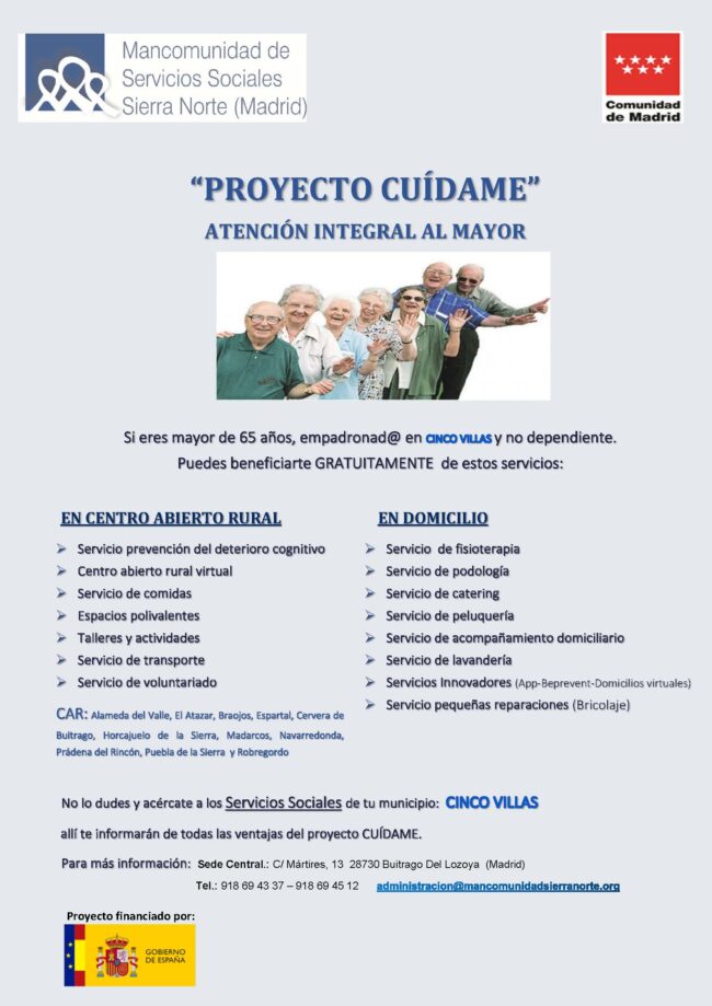 PARA MUNICIPIOS DE MENOS DE 250 HABITANTES ÚLTIMAS NOTICIAS PROYECTO CUIDAME SERRADA DE LA FUENTE Nombre Dirección Horario Telefono Centro de Salud Cinco Villas C/ de la Iglesia, 2 Medico: Viernes de 10:00 a 12:00… Leer más PROYECTO CUIDAME CINCO VILLAS PARA MUNICIPIOS DE MENOS DE 250 HABITANTES ÚLTIMAS NOTICIAS PROYECTO CUIDAME CINCO VILLAS Nombre…