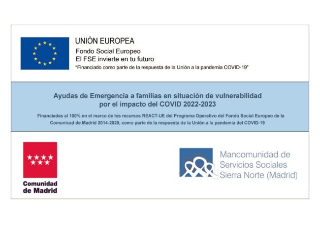 Ayudas de Emergencia a Familias en situación de vulnerabilidad por el impacto del COVID 2022-2023. Destinadas a cubrir las necesidades básicas de las personas empadronadas en cualquier municipio de la Mancomunidad, y que se encuentren en situación de emergencia social debido a la crisis económica y derivadas de la pandemia. Más información: http://www.mancomunidadsierranorte.org/ Solicitudes a través…