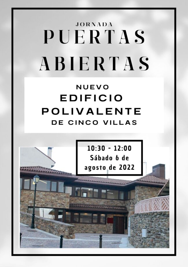 NUEVO EDIFICIO POLIVALENTE DE CINCO VILLASSABADO 6 DE AGOSTO DE 10:30 A 12:00