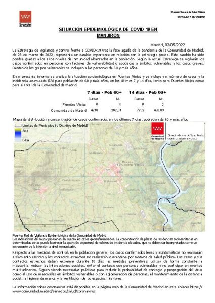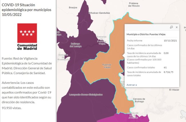Fuente: Red de Vigilancia Epidemiológica de la Comunidad de Madrid. Dirección General de Salud Pública. Consejería de Sanidad. Advertencia: Los casos contabilizados en este estudio son aquellos confirmados por Covid-19 que han sido identificados según su dirección de residencia.