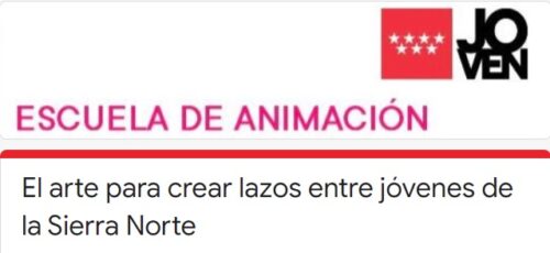 Taller organizado entre la Dirección General de Juventud, el ayuntamiento de Navalafuente y ayuntamiento de Puentes Viejas. Para inscripciones acceder al siguiente enlace: https://docs.google.com/forms/d/e/1FAIpQLSe_KtpHaVAzPqGoeokws3DpsDQd8xf-YVo0gyzJmweNnqeGyA/viewform?usp=pp_url Plazas limitadas.Plazo de inscripción el 24 de abril
