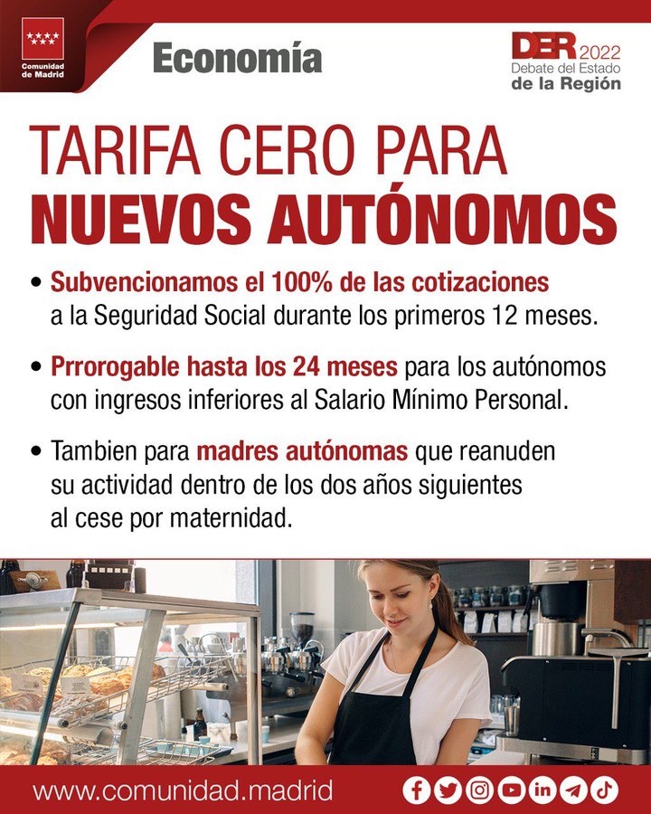 La #TarifaCero para los nuevos autónomos beneficiará a cerca de 30.000 madrileños.