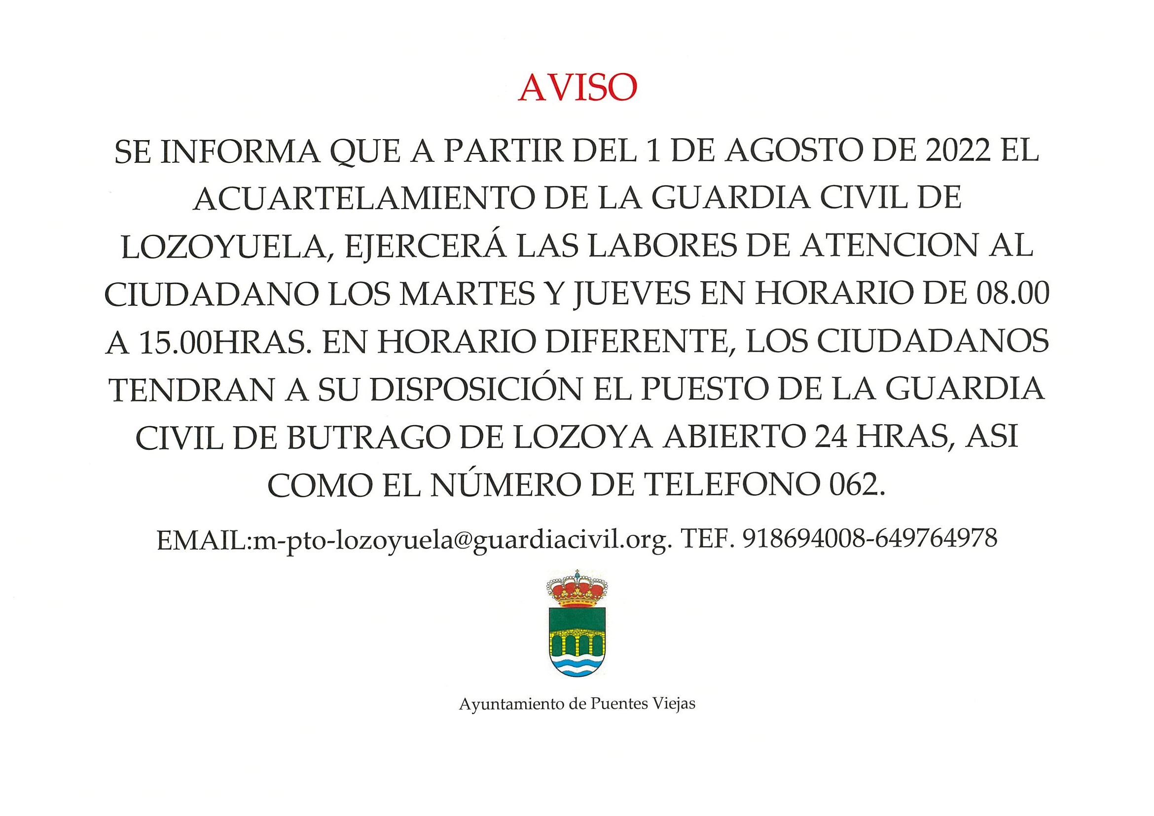 AVISO GUARDIA CIVIL LOZOYUELA
