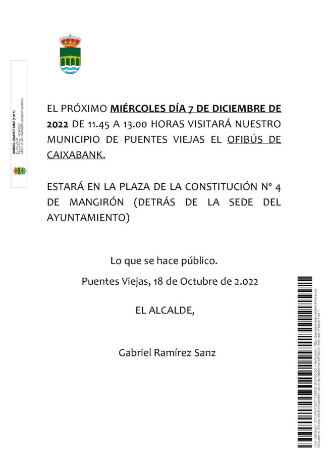 AFAMMER organiza cursos de digitalización. Pueden asistir mujeres residentes en la Sierra NorteINSCRIPCIONES:Cristina Exposito 609 223 722crista@afammermadrid.es ÚLTIMAS NOTICIAS PREPARADAS Nombre Dirección Horario Telefono Centro de Salud Cinco Villas C/ de la Iglesia, 2 Medico: Viernes de 10:00 a 12:00… Leer más OFIBÚS DE CAIXABANK DICIEMBRE 2022 El próximo miércoles día 7 DE DICIEMBRE DE…
