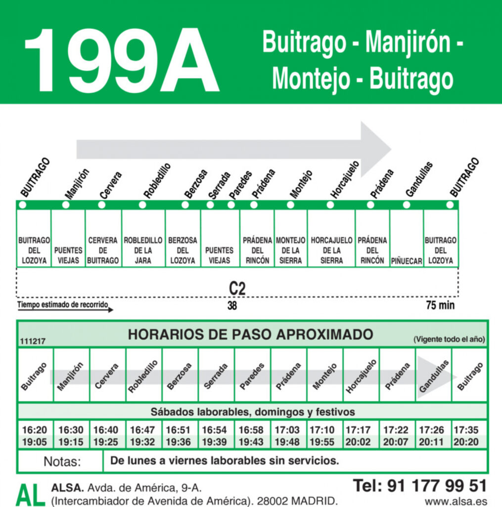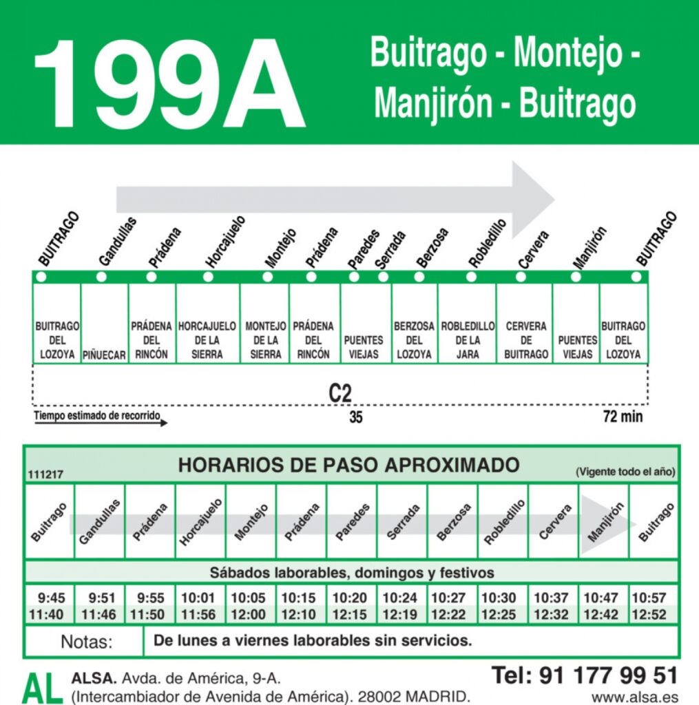 Horarios desde Buitrago a Montejo- Mangirón- Buitrago