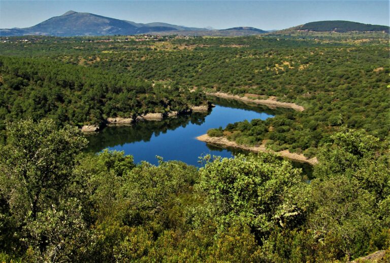 Tras pasar otra barrera por nuestro paso peatonal, dejaremos a la izquierda un depósito de agua para incendios forestales y un abrevadero para el ganado, entre especies espinosas (endrino, rosal silvestre, zarzamora o majuelo). A unos 500 m se llega a una nueva bifurcación, con bonitas vistas de la Sierra, entre las que destacan Peña Águila y Peñaparda, y del entorno natural y rural que rodea el casco urbano de Serrada. En el cruce se gira a la derecha y tras pasar un paso canadiense el camino nos conduce de nuevo a la bonita Plaza de Serrada de la Fuente.